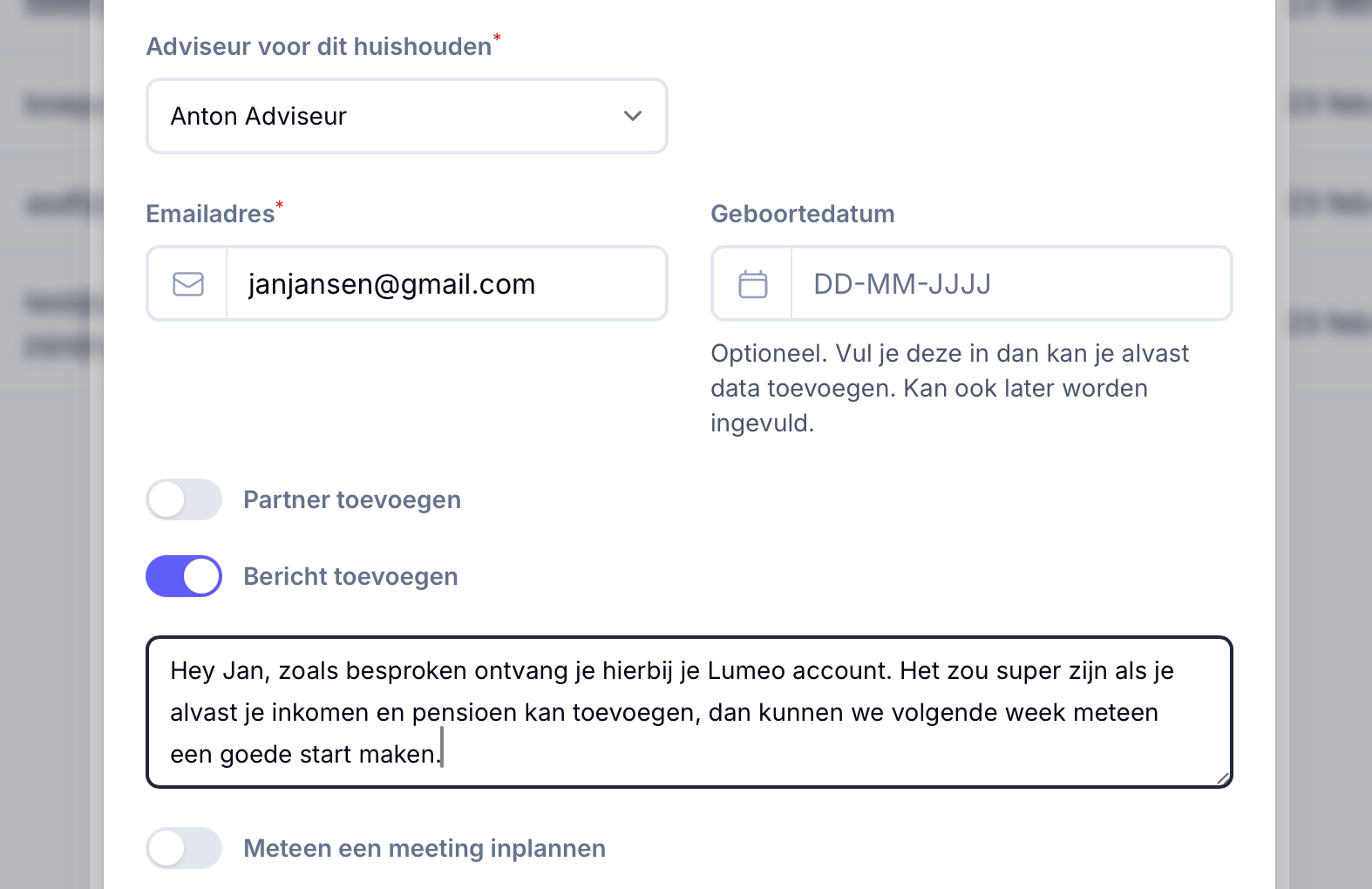 Als je een account uitnodigt, of bijvoorbeeld een account wat nog geen uitnodiging heeft gehad later alsnog een uitnodiging stuurt, dan kan je een persoonlijk bericht toevoegen wat in de uitnodiging e-mail wordt toegevoegd.