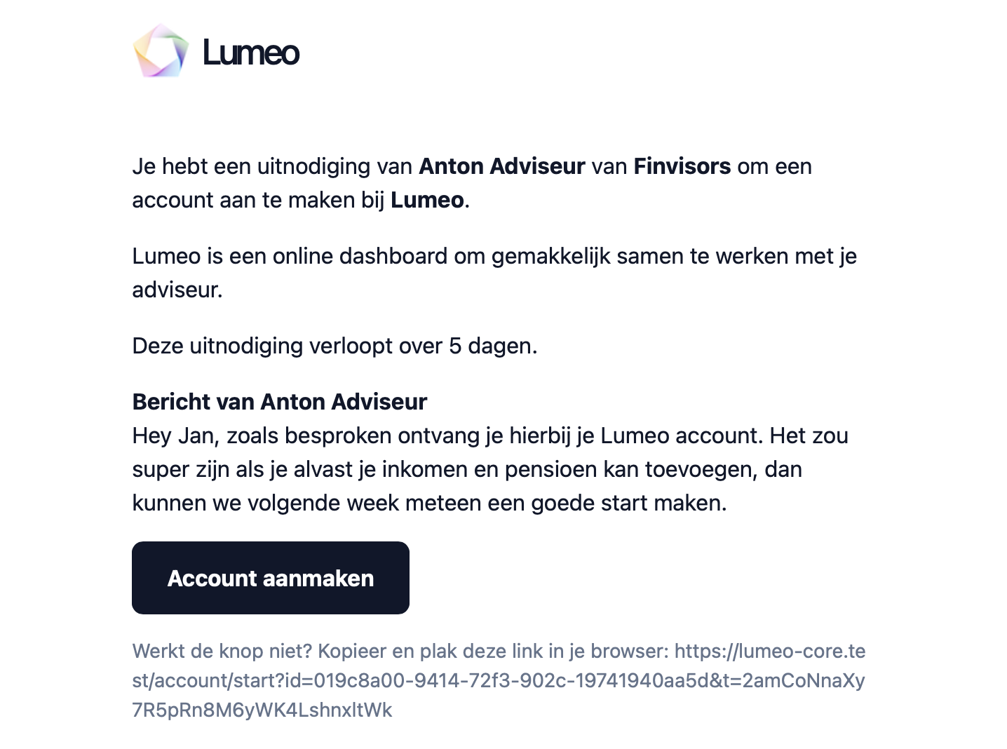 Dit bericht wordt vervolgens in de uitnodiging e-mail toegevoegd: